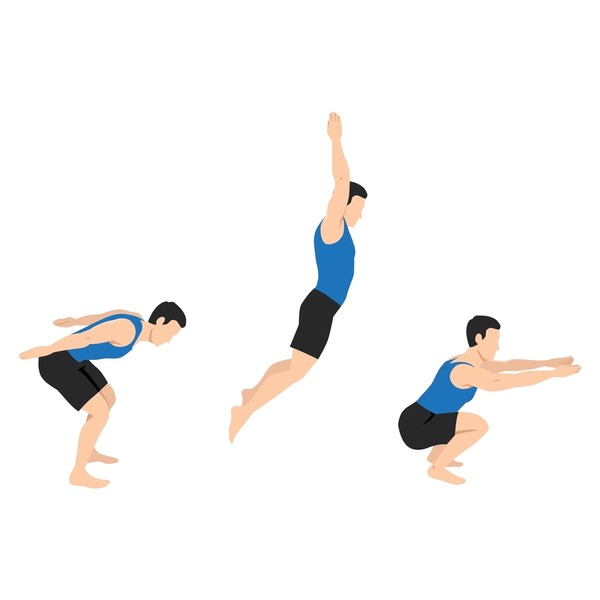 踏み込んで(または沈んで)から、上昇する局面の前半では大腿四頭筋がより働いて、後半ではハムストリングスがより働く。