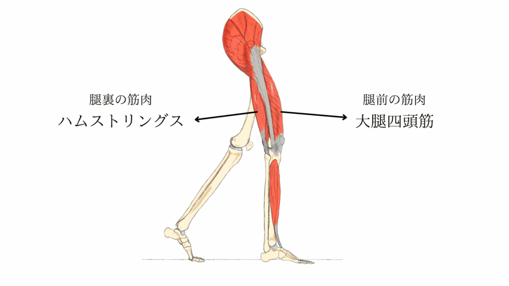 その役割りは、大腿四頭筋が膝関節の伸展で、ハムストリングスが股関節の伸展。
